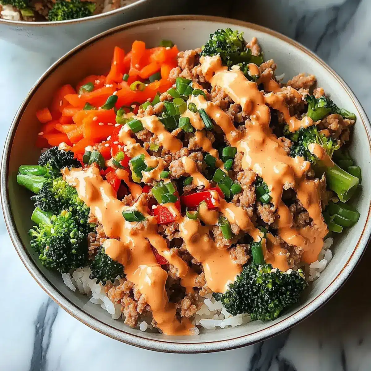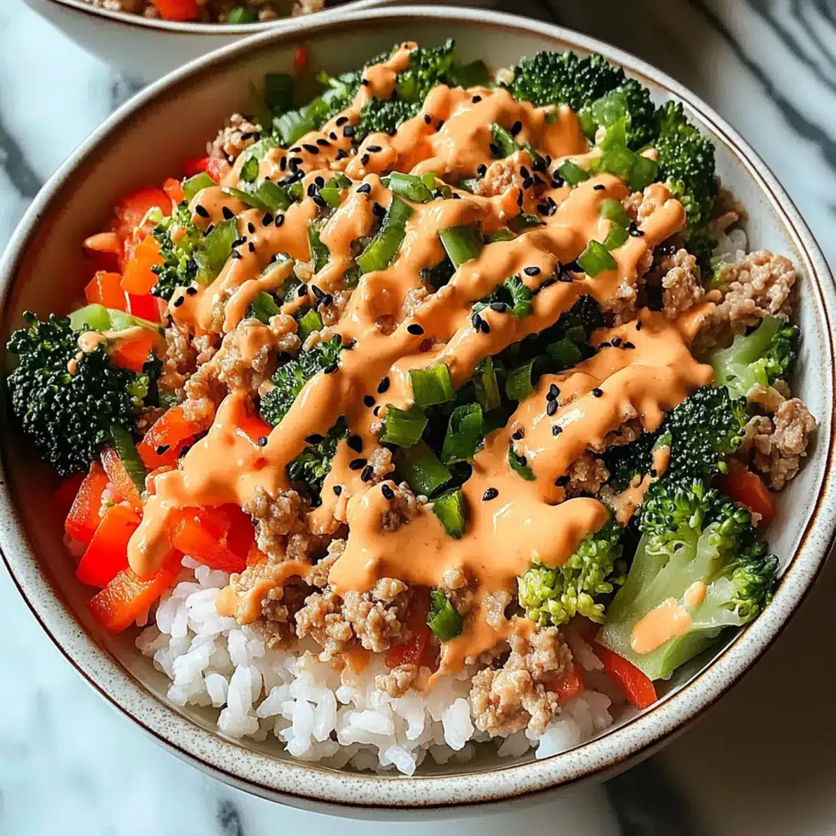 These Bang Bang Ground Turkey Rice Bowls are a meal prep dream! You can prepare the jasmine rice and the bang bang sauce up to 24 hours in advance. Store the cooked rice in an airtight container in the refrigerator to keep it fluffy. The sauce should also be refrigerated but kept separate to retain its vibrant flavors. You can sauté the ground turkey and vegetables up to 3 days in advance; just be sure to let them cool before storing in a container. When you’re ready to enjoy your delicious meal, simply reheat the rice and turkey mixture in the microwave or on the stove, then drizzle with the bang bang sauce for that perfect finishing touch. This way, you save time while ensuring every bite is just as tasty!
