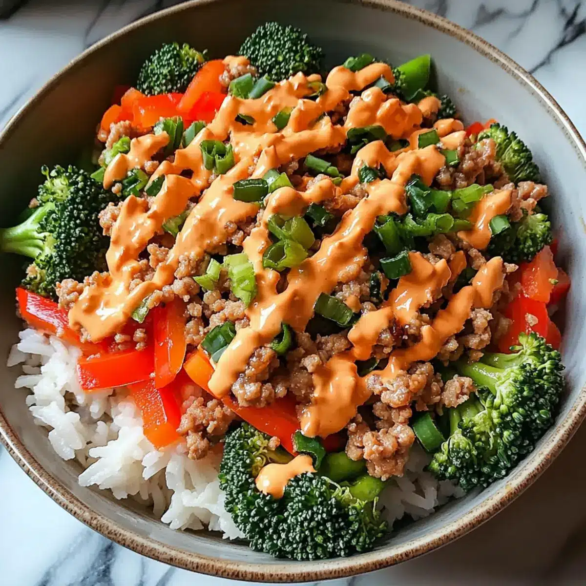 Whisking together ingredients in my kitchen always feels a bit like crafting magic, and today’s enchantment takes the form of Bang Bang Ground Turkey Rice Bowls. This dish combines savory ground turkey, vibrant veggies, and perfectly cooked jasmine rice, all drizzled with a creamy, sweet-spicy bang bang sauce that elevates the meal to new heights. If you’re on the hunt for a quick recipe that’s both satisfying and a healthier dinner option, look no further. These bowls are not only a breeze to whip up on busy weeknights, but they also shine in meal prep, ensuring you have delightful leftovers throughout the week. Are you ready to discover how easy it is to bring the exciting flavors of takeout into your own kitchen?