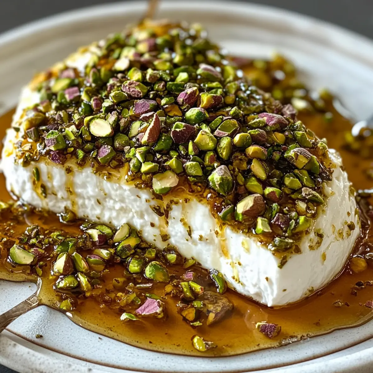 - Drizzle with Honey: Drizzle hot honey in a zig-zag pattern over the cheese and pistachios.