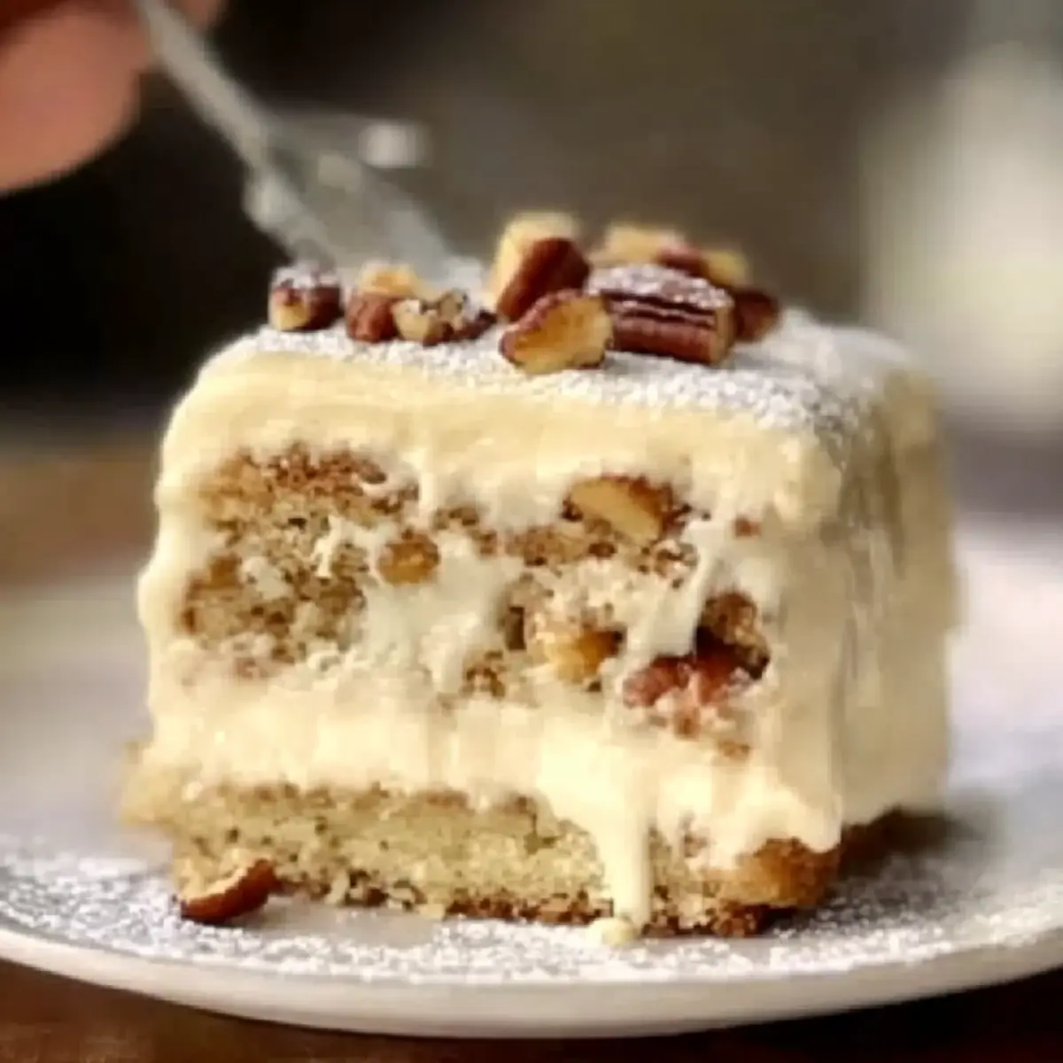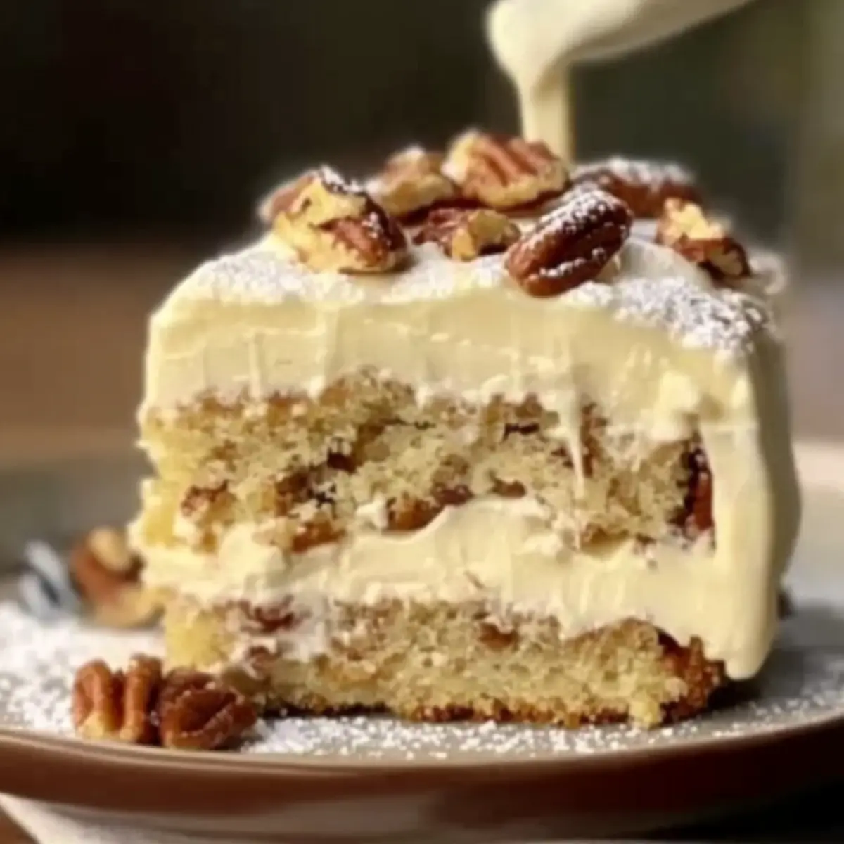 Spread the whipped cream evenly over the soaked cake, then sprinkle additional toasted pecans on top for garnish. Slice and serve chilled, allowing every guest to enjoy the creamy richness balanced by the delightful crunch of pecans.