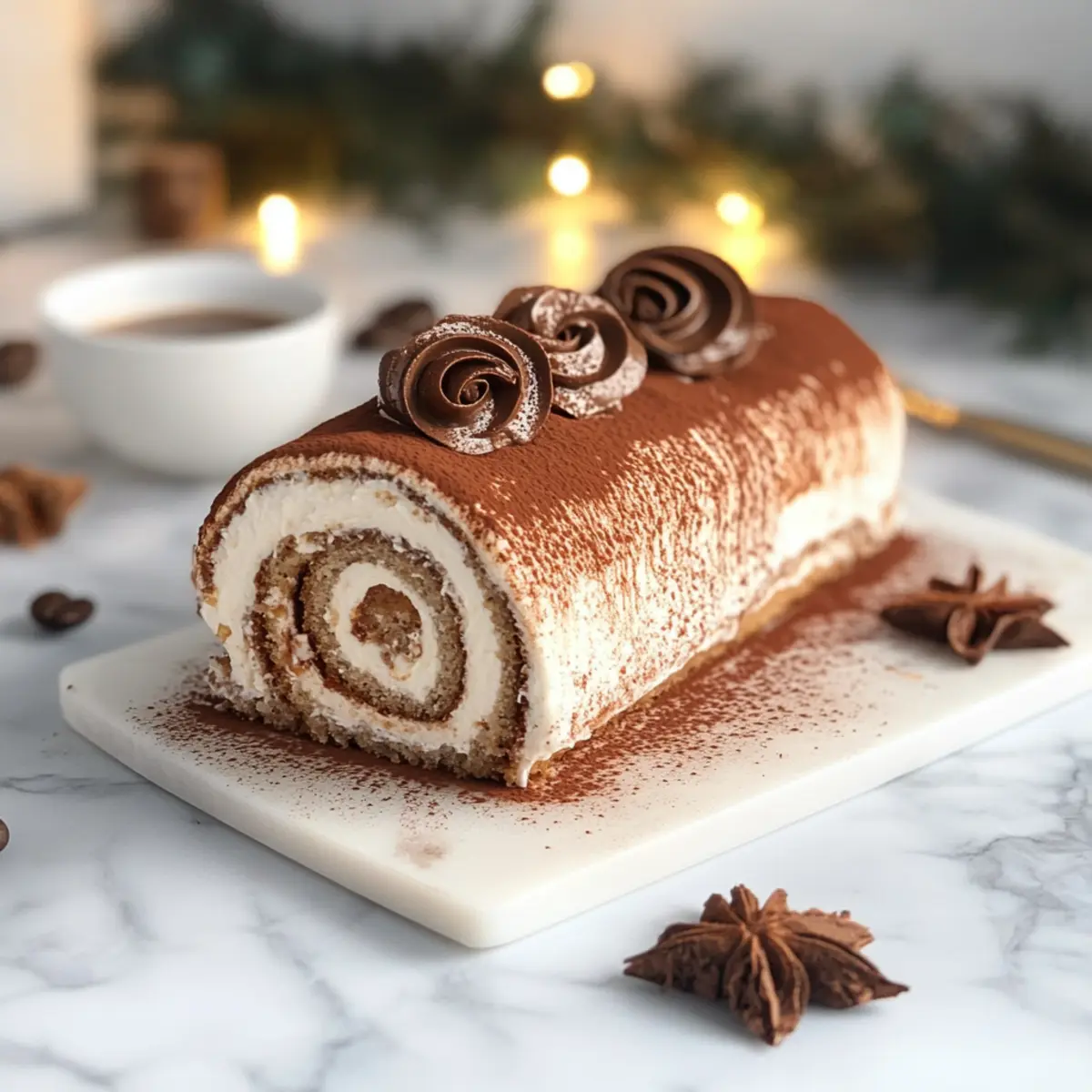 Gourmet Tiramisu Yule Log Cake: Your Festive Coffee Indulgence