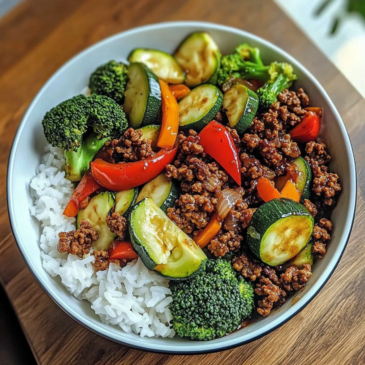 Irresistible Spicy Ground Beef Stir-Fry Bowl with Garlic Veggies