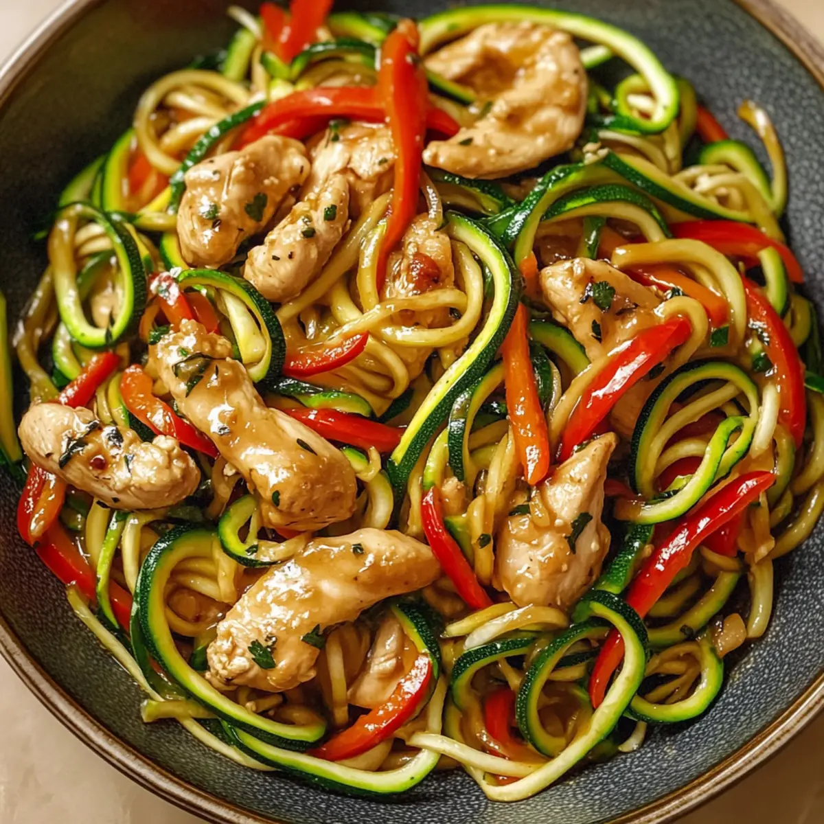 Garlic Chicken Zucchini Noodles Stir Fry That’s Quick & Healthy
