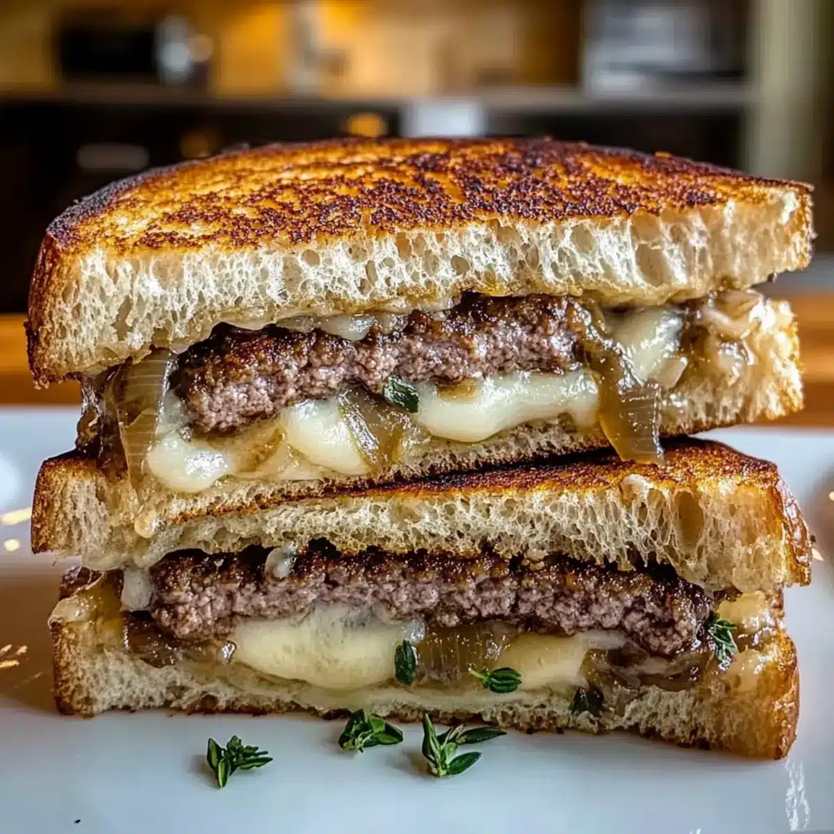 Irresistible Patty Melt on Garlic Herb Toasted Sourdough Delight