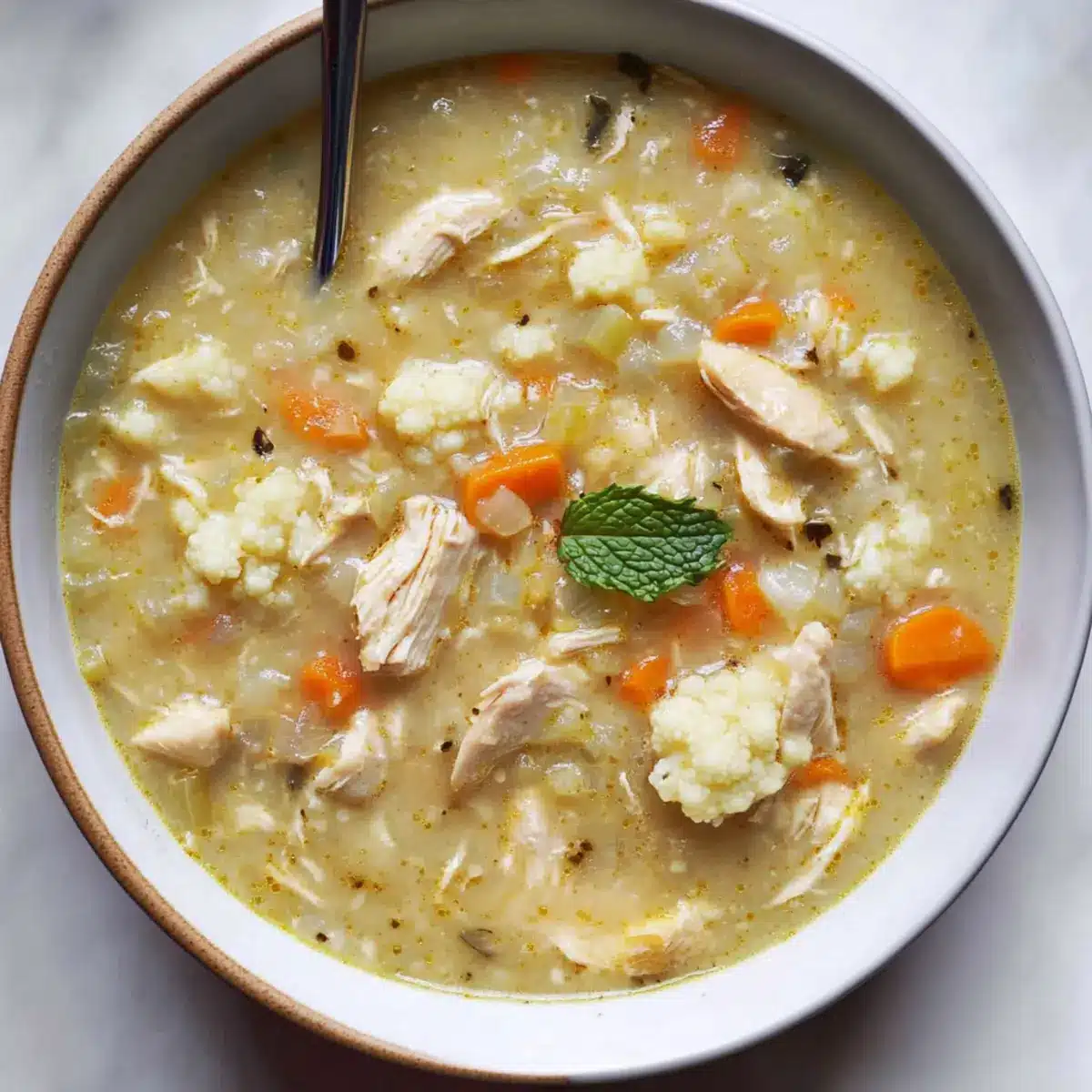 Reheating: Gently reheat on the stove over medium heat, adding extra chicken broth if needed to reach your desired consistency. Enjoy your warming bowl of cauliflower chicken soup!