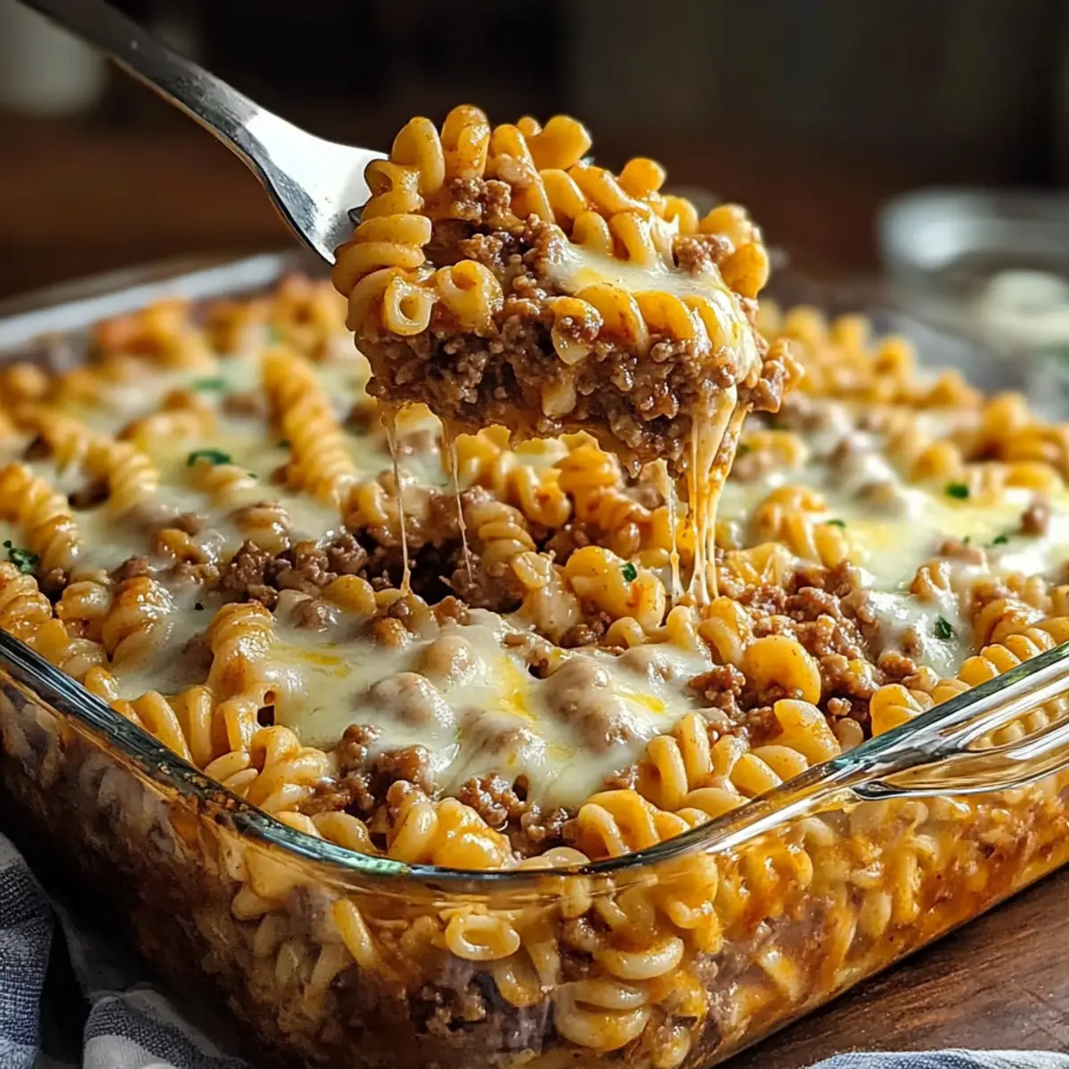 Comfort Food Heaven: The Cheesy Hamburger Casserole Bake combines your favorite childhood flavors in a simple, family-friendly dish.