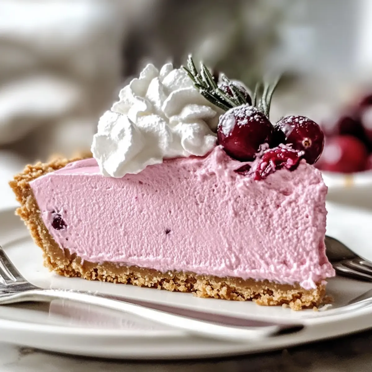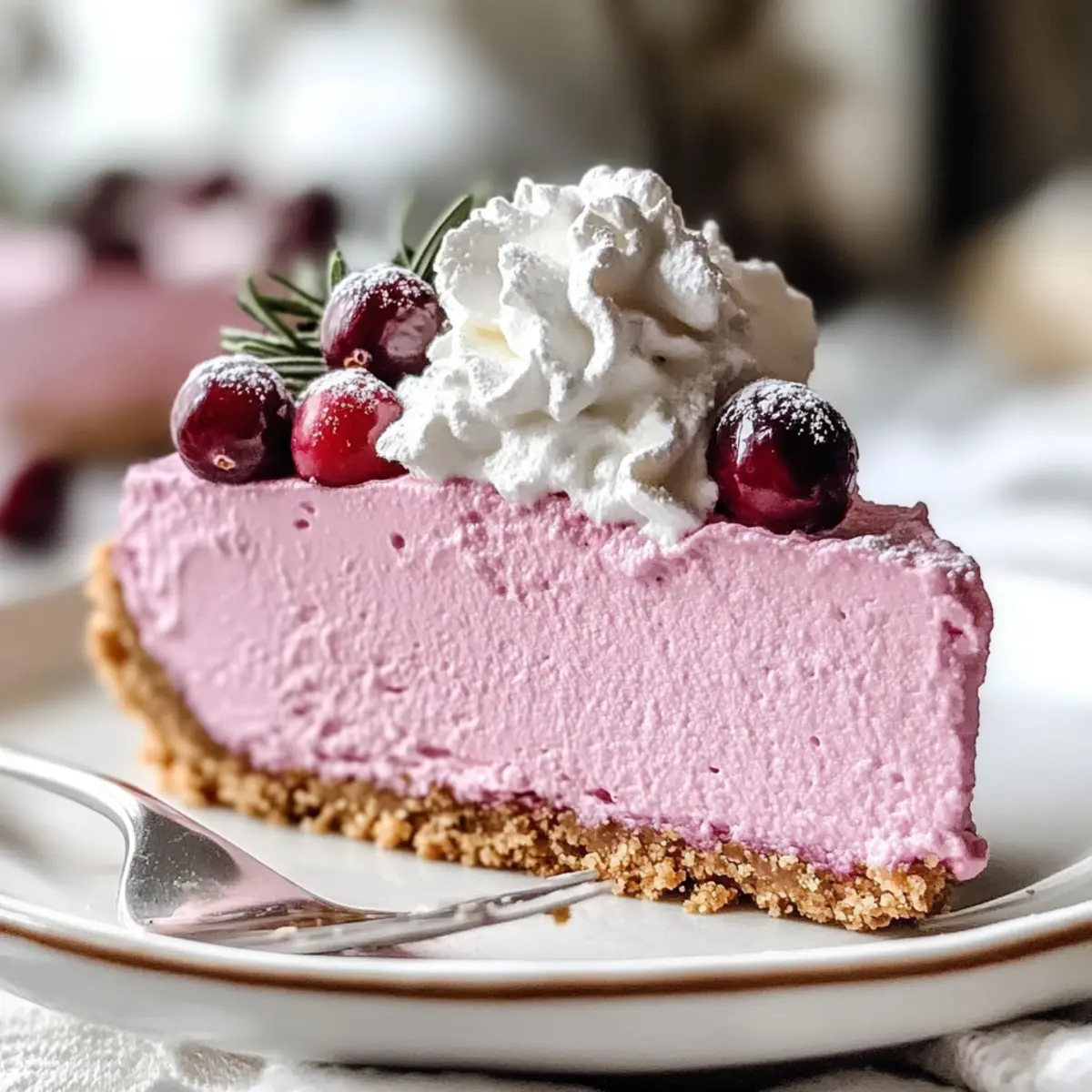 Effortless Preparation: This No-Bake Cranberry Mousse Pie simplifies dessert-making into an enjoyable experience. Light and Refreshing: Each slice is a fluffy dream, perfect for any occasion—especially when you want something that feels indulgent yet light. Crowd-Pleasing Delight: With its vibrant color and festive flavor, it’s bound to impress guests at parties or family gatherings. Versatile Options: Feel free to swap in coconut cream for a dairy-free treat or experiment with different crusts like chocolate for a unique twist. Make Ahead: Prepare it a day prior for maximum flavor and perfect texture—simply chill and serve! Don’t forget, it pairs wonderfully with a Christmas Cranberry Spritzer for the ultimate festive experience!