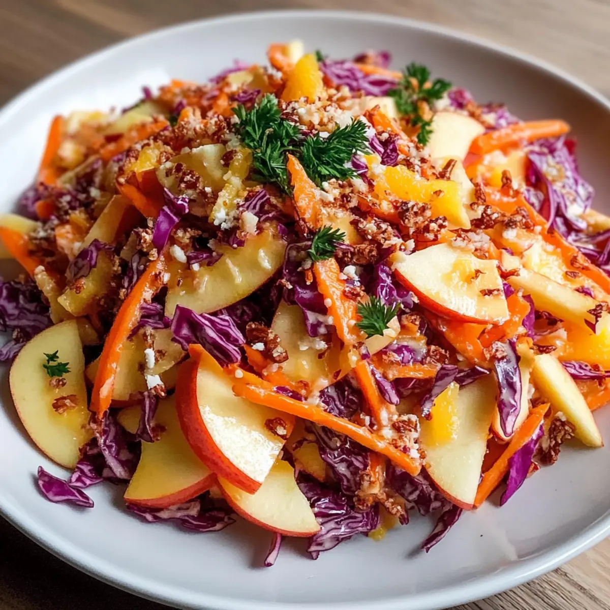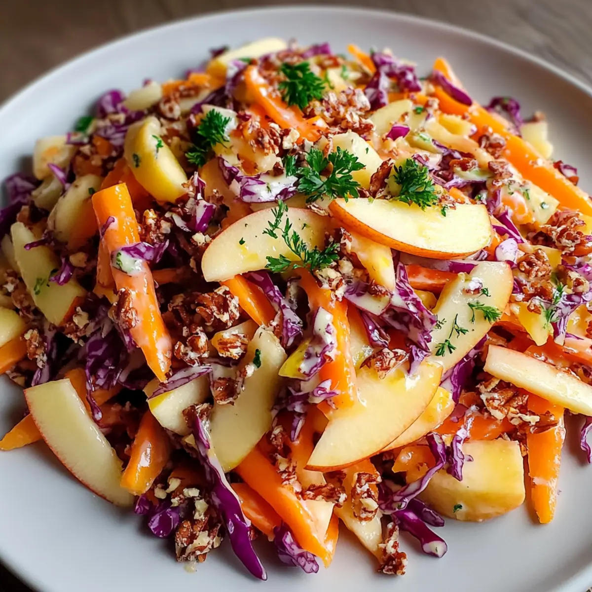 Seasonal Fruits: Swap apples for seasonal fruits like pears or persimmons for an autumn twist. Each brings a unique sweetness and enhances the salad’s flavor profile, celebrating nature’s bounty!