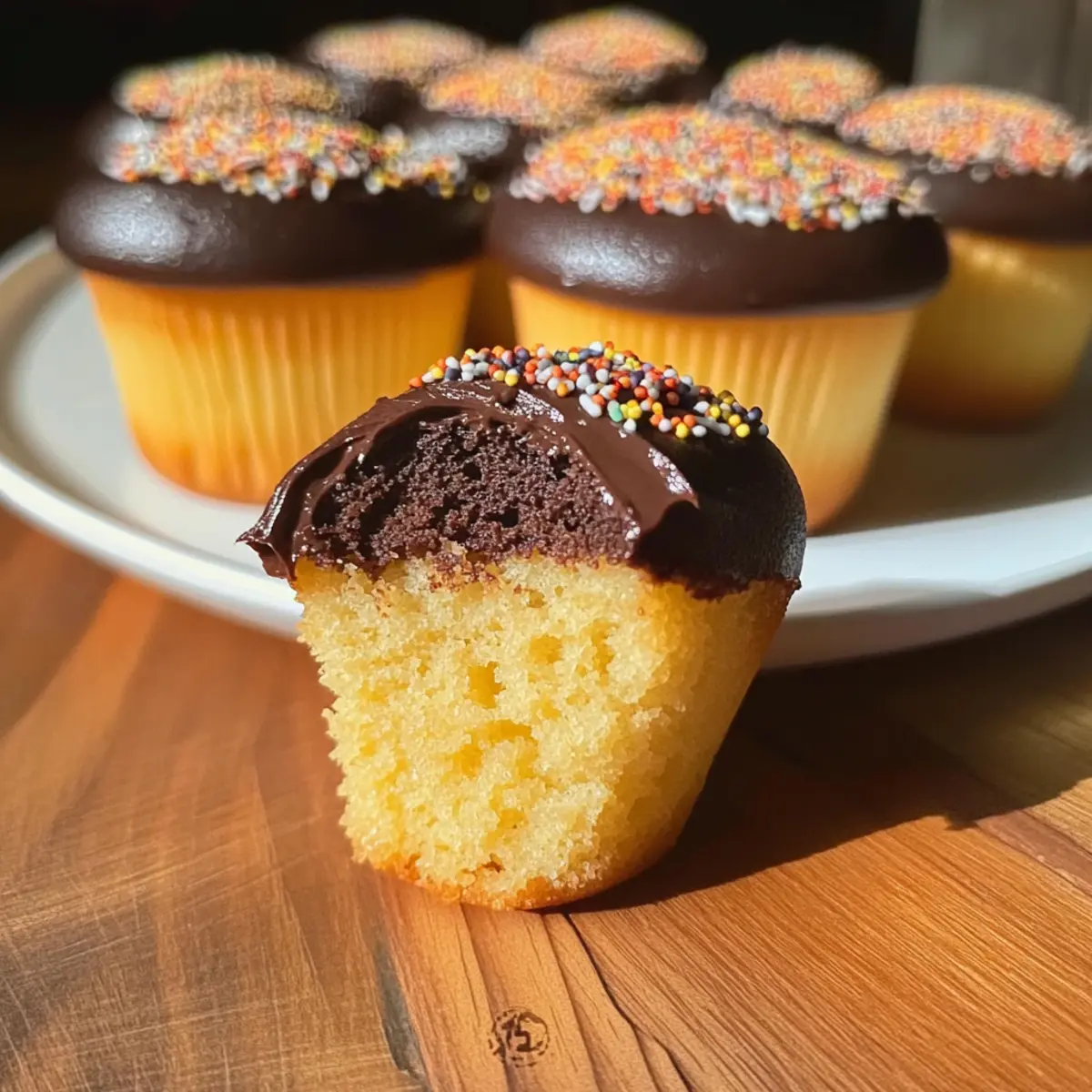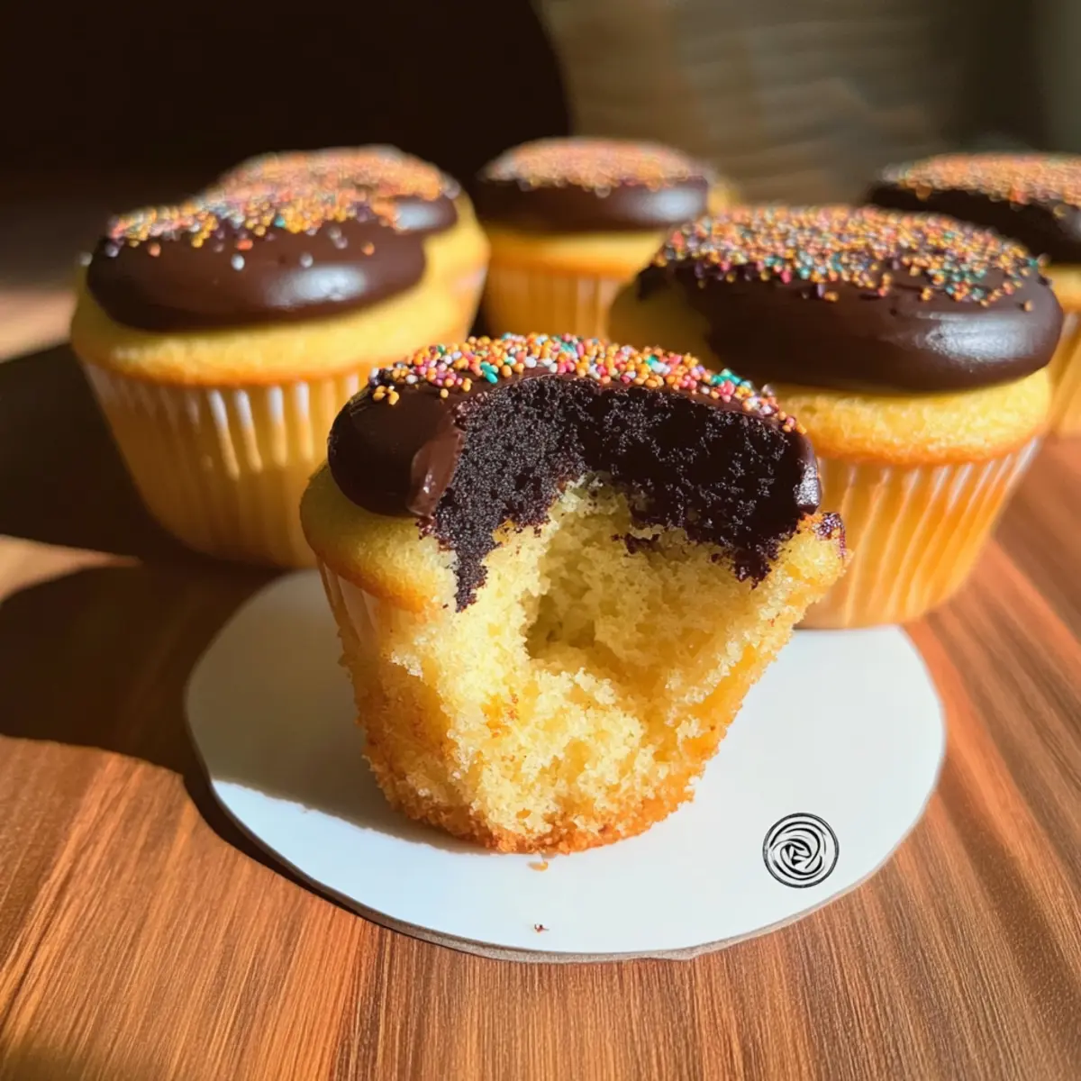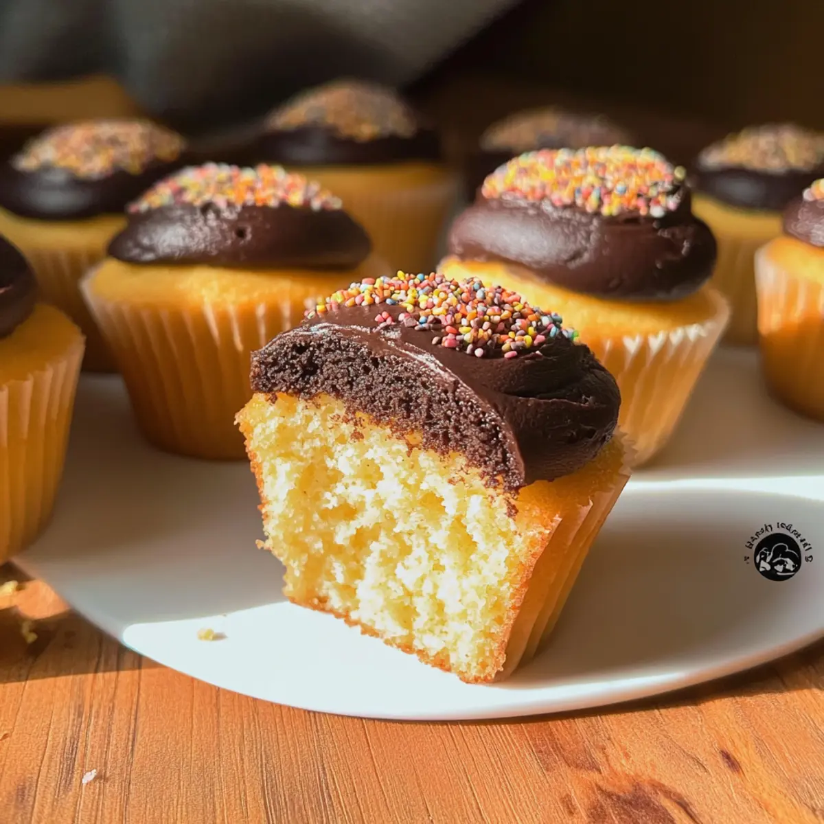 - Once cooled, spread chocolate frosting on each cupcake and sprinkle with chocolate sprinkles.