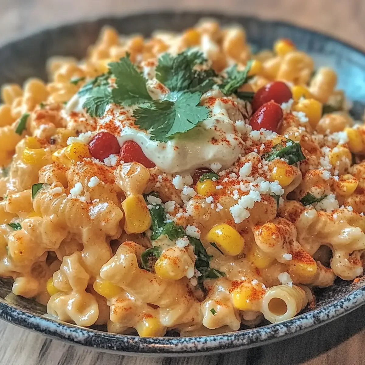 - Combine Ingredients: In a large bowl, combine cooled pasta, charred corn, and dressing. Gently fold in cotija cheese and cilantro.