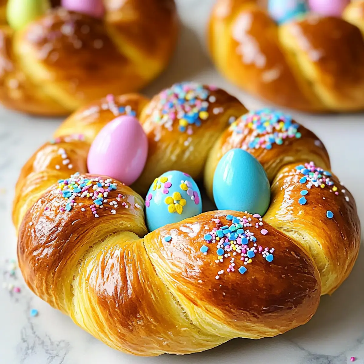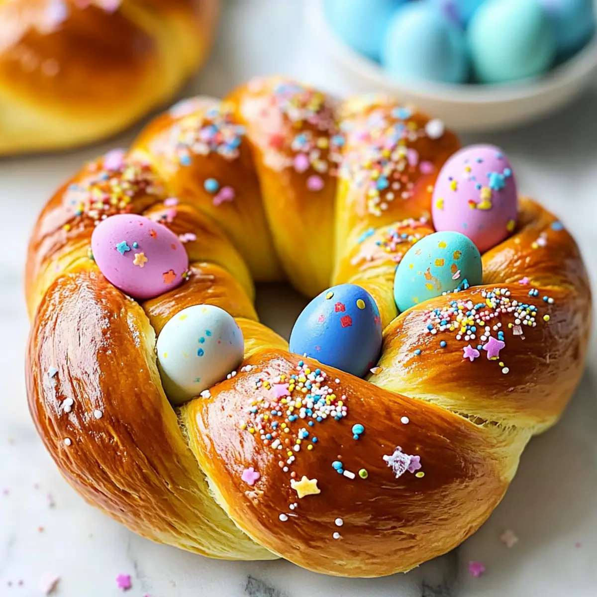 - Dyed Easter Eggs – These colorful decorations enhance the festive appearance of the bread.