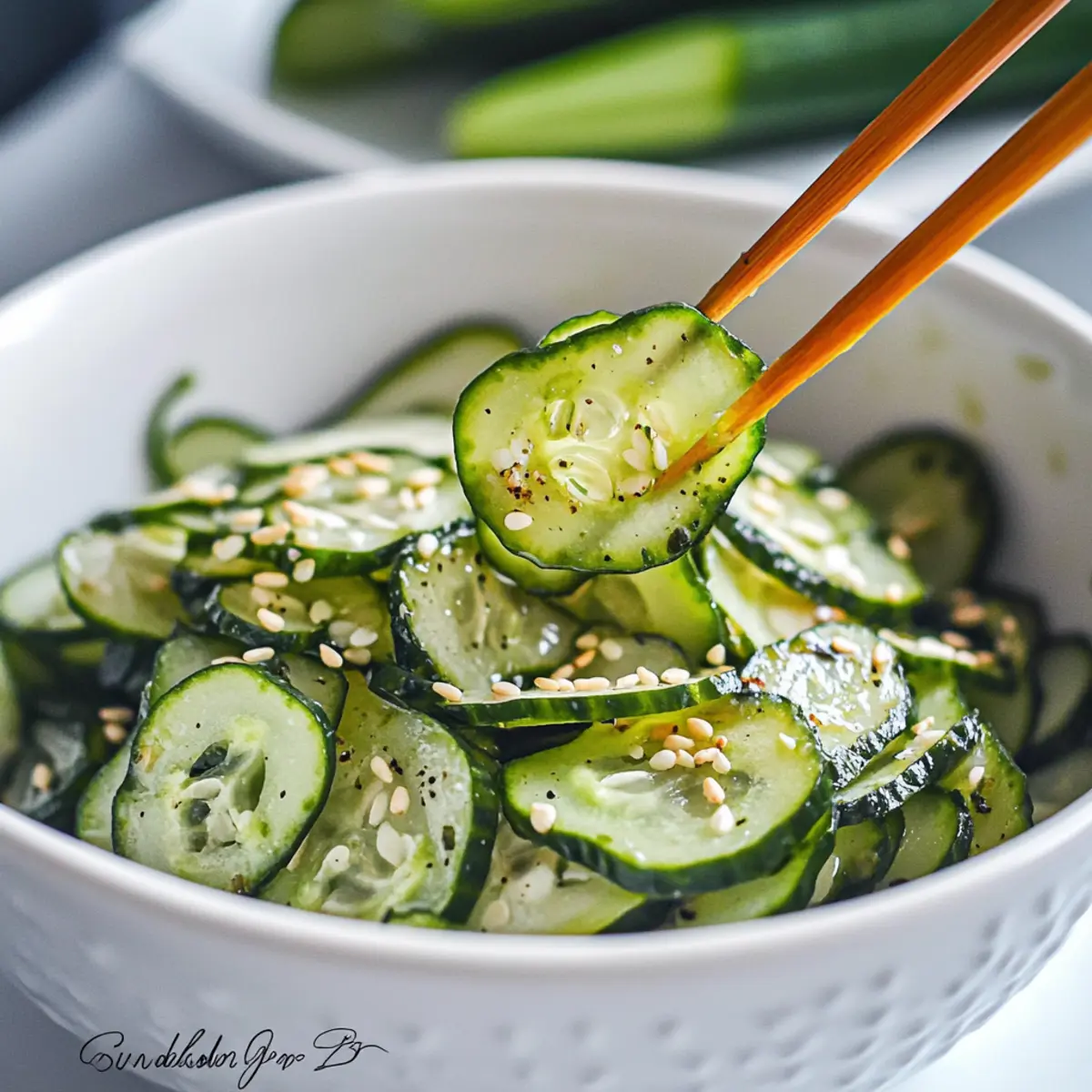 Nutty Crunch: Swap toasted sesame seeds for crushed peanuts or cashews to elevate the texture. The added crunch complements the cucumbers perfectly.