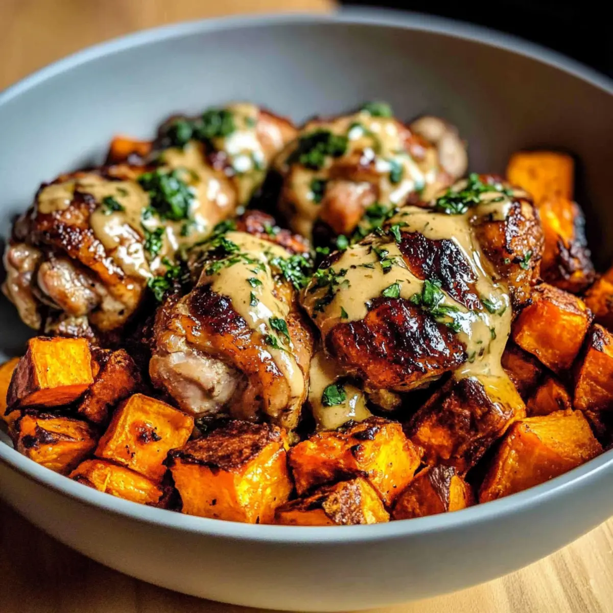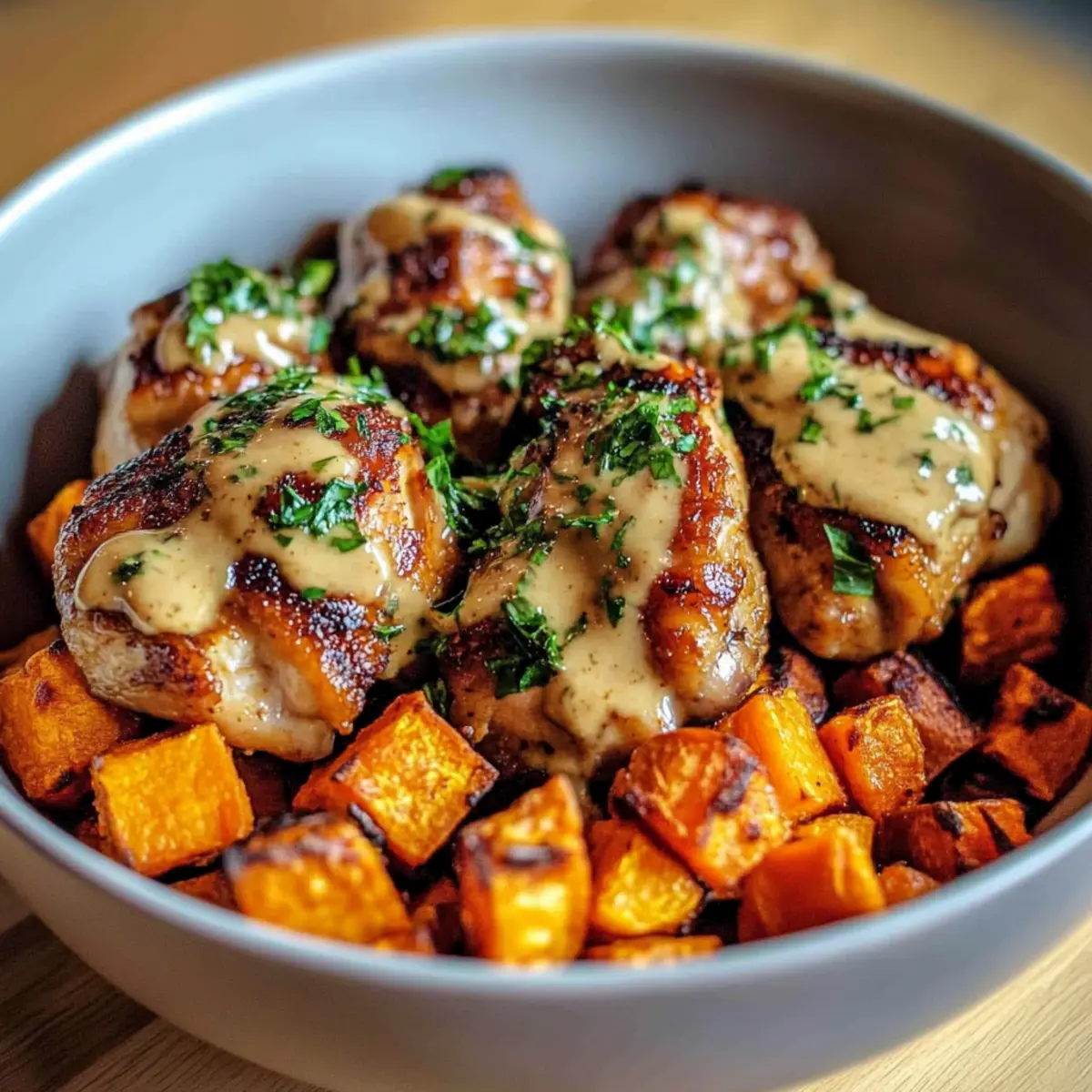As the autumn leaves begin to fall, there’s something comforting about a warm meal that feels like a cozy hug on a chilly evening. Enter my Melt-in-Your-Mouth Maple Dijon Chicken & Sweet Potato Bowls—a dish that truly embodies the essence of the season. Marinating tender chicken thighs in a delightful maple Dijon sauce, paired with perfectly roasted sweet potatoes, creates a heavenly combination that’s as satisfying as it is nutritious. Not only is this recipe quick to whip up, making it an ideal choice for busy weeknights, but it’s also gluten-free and packed with wholesome ingredients that will leave you feeling great. Curious about the delicious details? Let’s dive into this heartwarming recipe together!