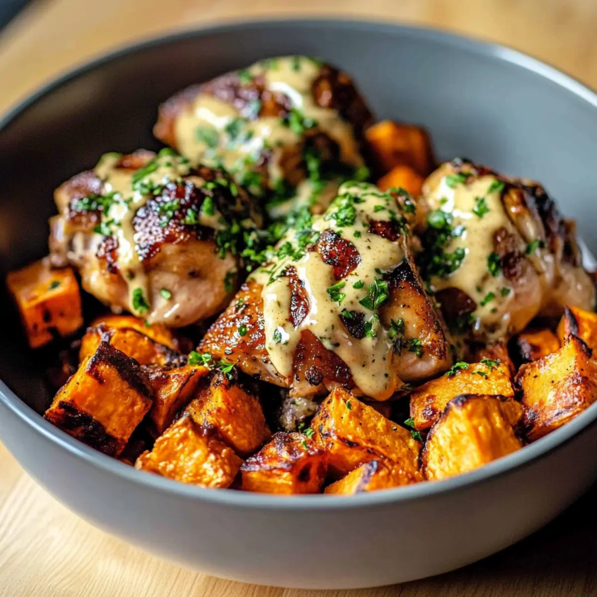Melt-in-Your-Mouth goodness awaits! This recipe combines tender chicken thighs and sweet potatoes, creating a warm hug in a bowl. Healthy and Nutritious, it’s gluten-free and perfect for those pursuing a wholesome lifestyle. Quick and Easy to prepare, it fits seamlessly into your busy weeknight routine. Plus, the sweet and tangy maple Dijon flavors make it irresistibly delicious! For added variety, serve it with your favorite greens or try it alongside Chicken Stroganoff Cozy. You won’t just enjoy this meal—you’ll love bringing it to your table!