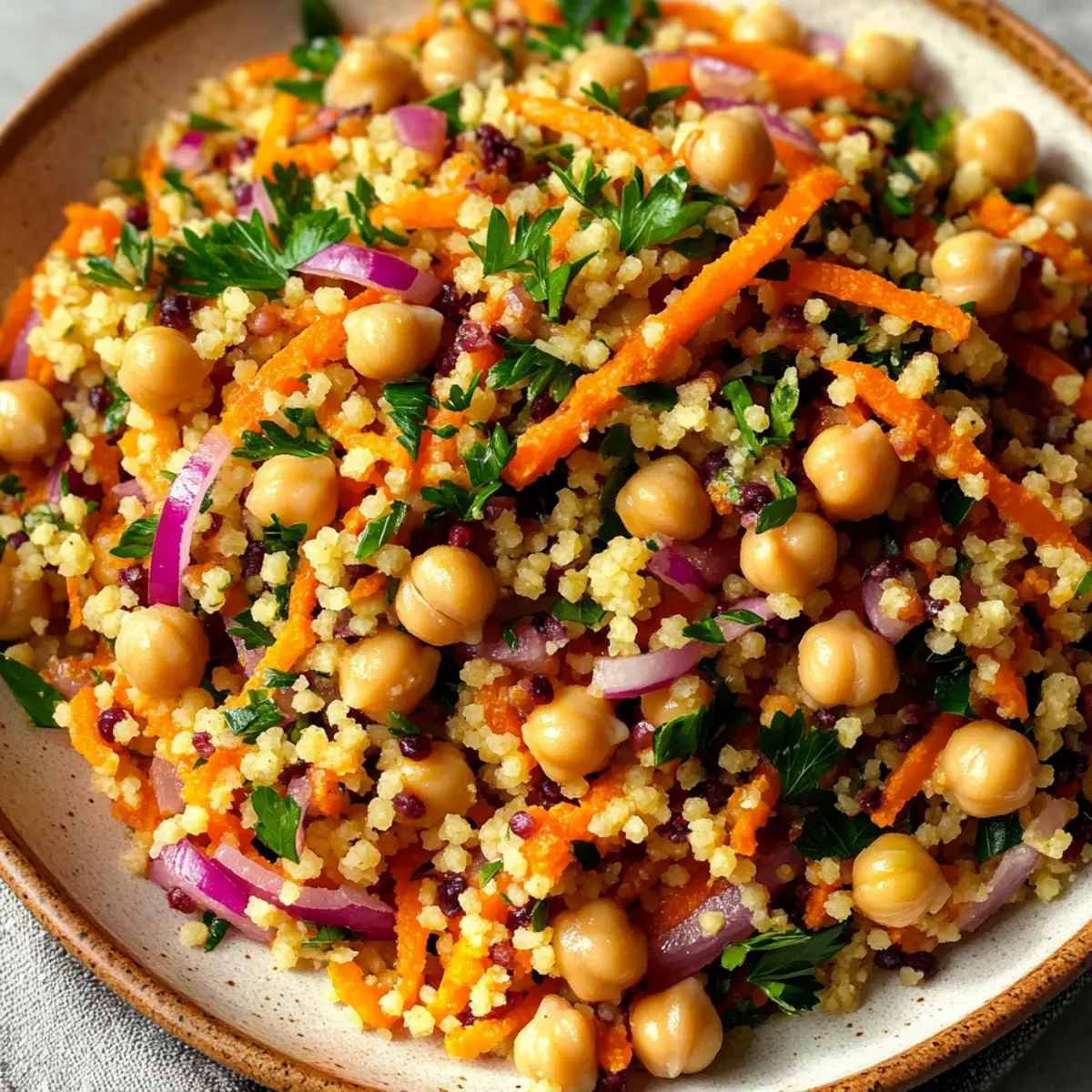 Ingredient Substitutions: Feel free to swap couscous with quinoa or rice for gluten-free versions, ensuring everyone can enjoy this Moroccan-Spiced Chickpea and Carrot Couscous Salad.