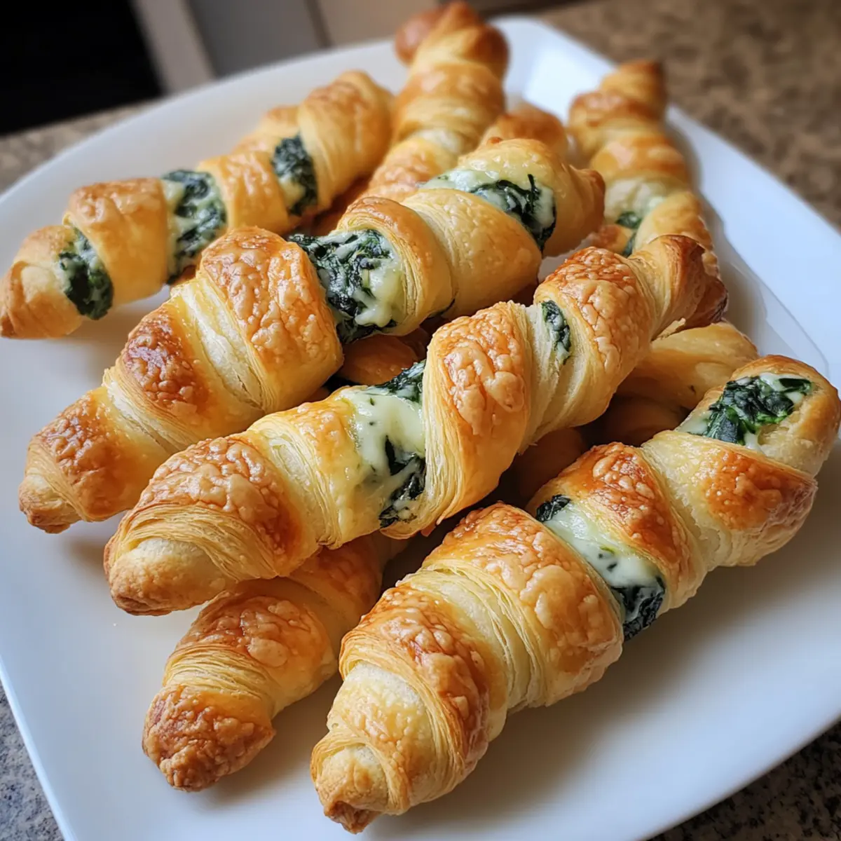 Once out of the oven, allow the Parmesan and Spinach Cheese Twists to cool slightly for about 5 minutes. This brief moment enables the flavors to settle. Serve these delightful twists warm, alongside marinara or garlic butter for dipping. Their crispy, flaky texture paired with the creamy filling makes them a true crowd-pleaser!