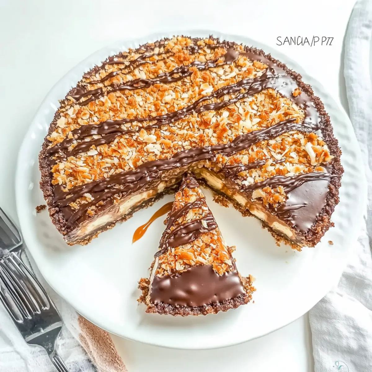 Oh no, that can happen if you cut too early! To avoid a messy slice, make sure to chill your Samoa Cookie Pie for at least 4 hours, or preferably overnight, before slicing. Use a sharp knife and wipe it clean with a cloth between cuts. This will help you achieve neat, beautiful slices every time!