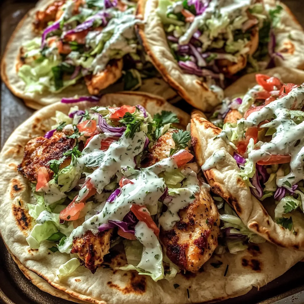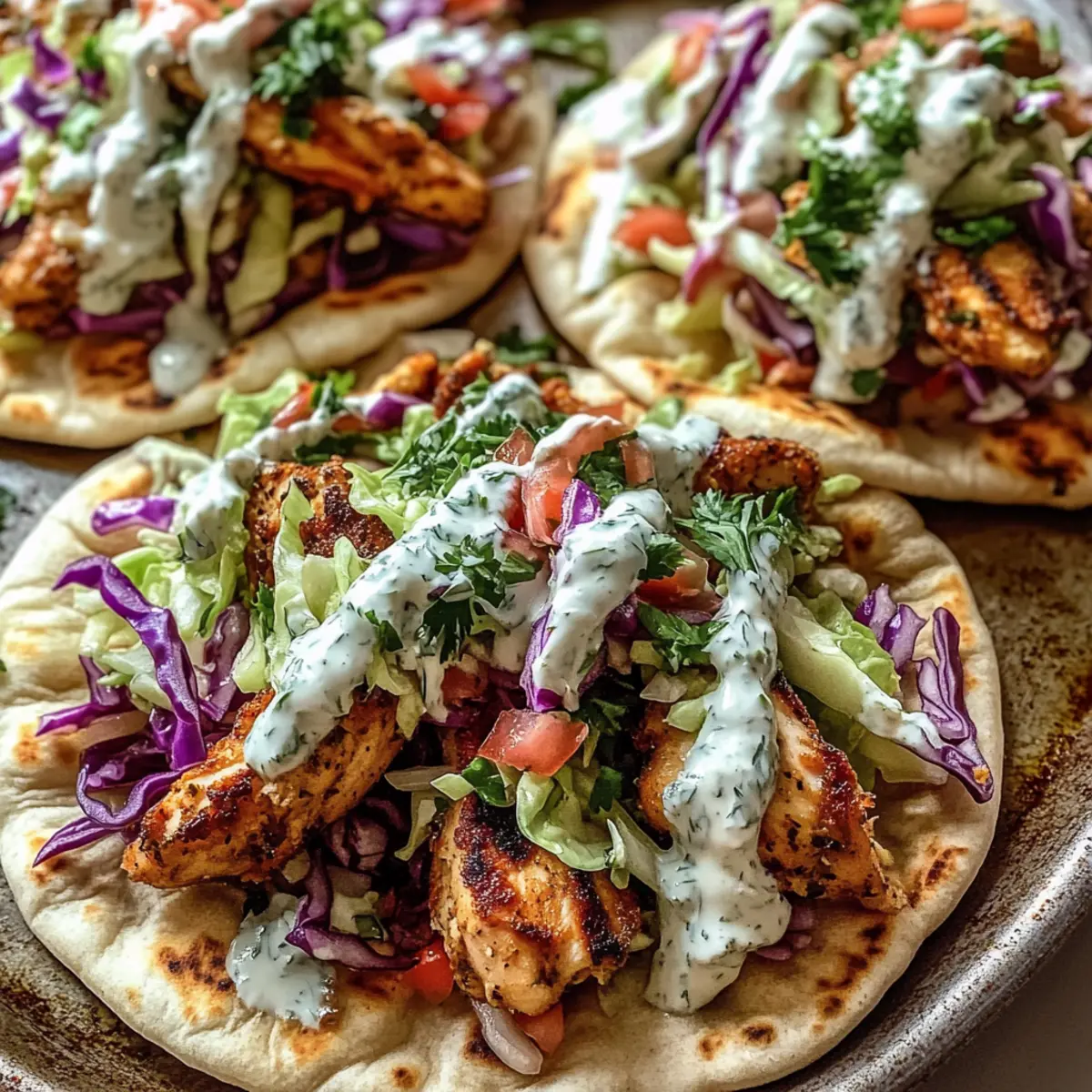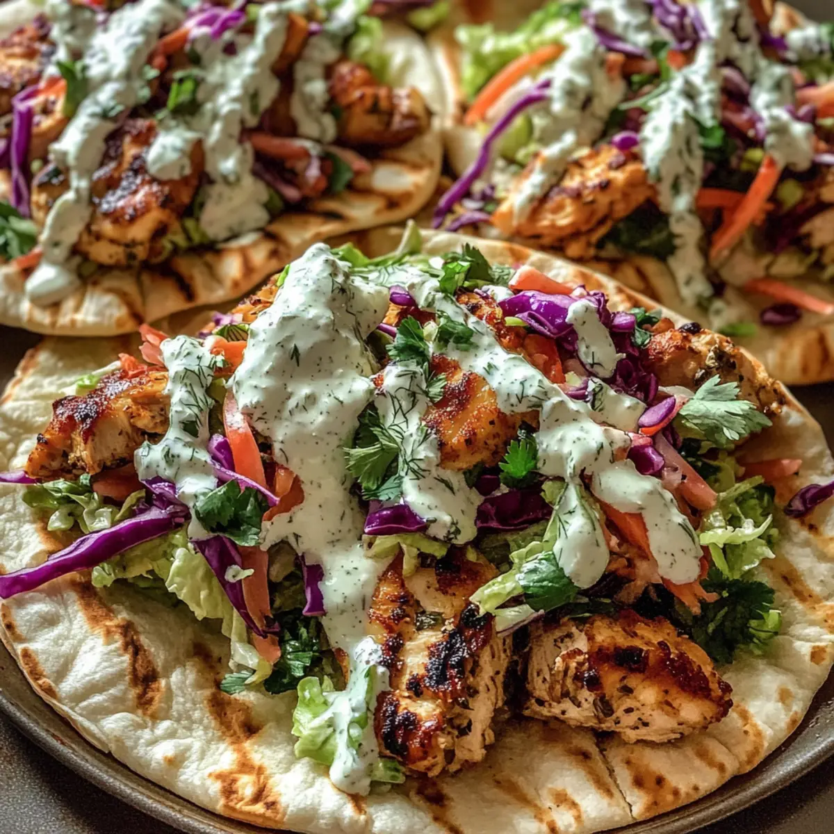 Just before serving, warm the whole wheat pitas in the oven for 1–2 minutes. This simple step makes them pliable and cozy, perfect for holding the juicy chicken and crunchy slaw without tearing.