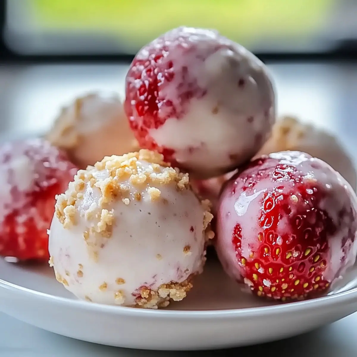 Chocolate Lover: Mix in mini chocolate chips or chunks before shaping the balls for a deliciously sweet twist. The dark chocolate will complement the cheesecake and strawberry flavors beautifully!