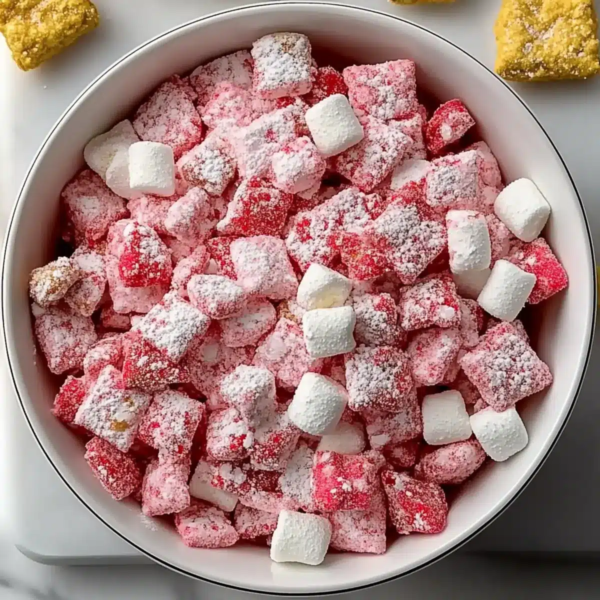 Strawberry Cheesecake Chow: Mix in crushed graham crackers to evoke that classic cheesecake flavor. This variation adds a delightful crunch and richness, reminiscent of a summer dessert.