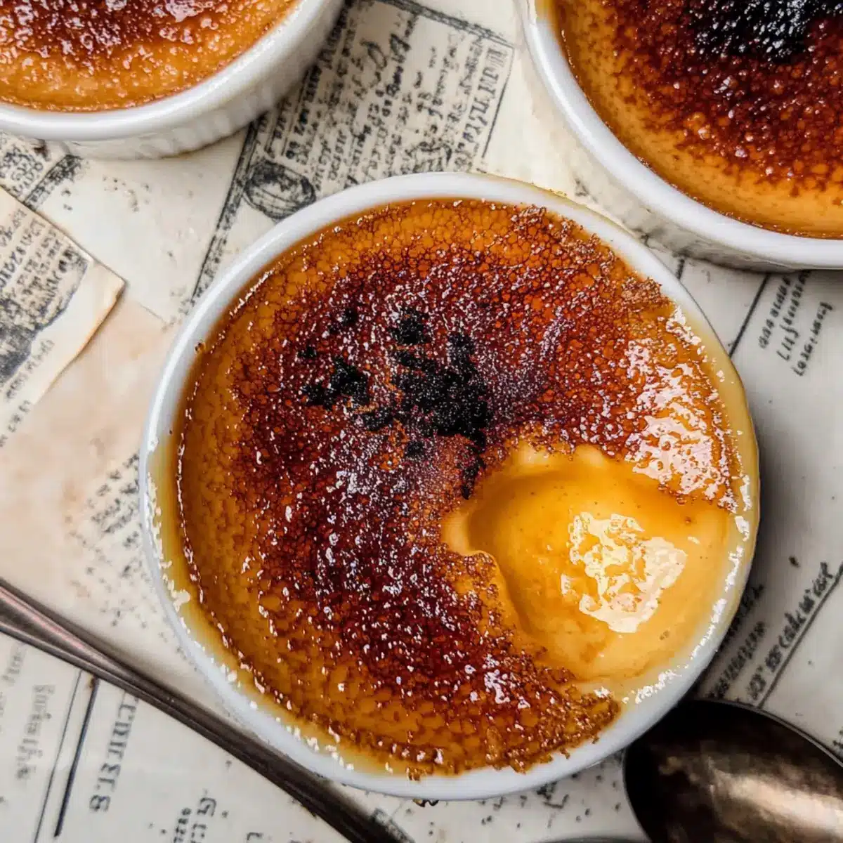 Yes, you can freeze the custard without the caramelized sugar for up to 1 month. To freeze, wrap each ramekin tightly in plastic wrap and place them in a freezer-safe container. When you’re ready to enjoy, thaw them in the refrigerator overnight. Gently rewarm the brulees in a water bath, then sprinkle on fresh sugar and caramelize just before serving for that perfect crunchy finish.
