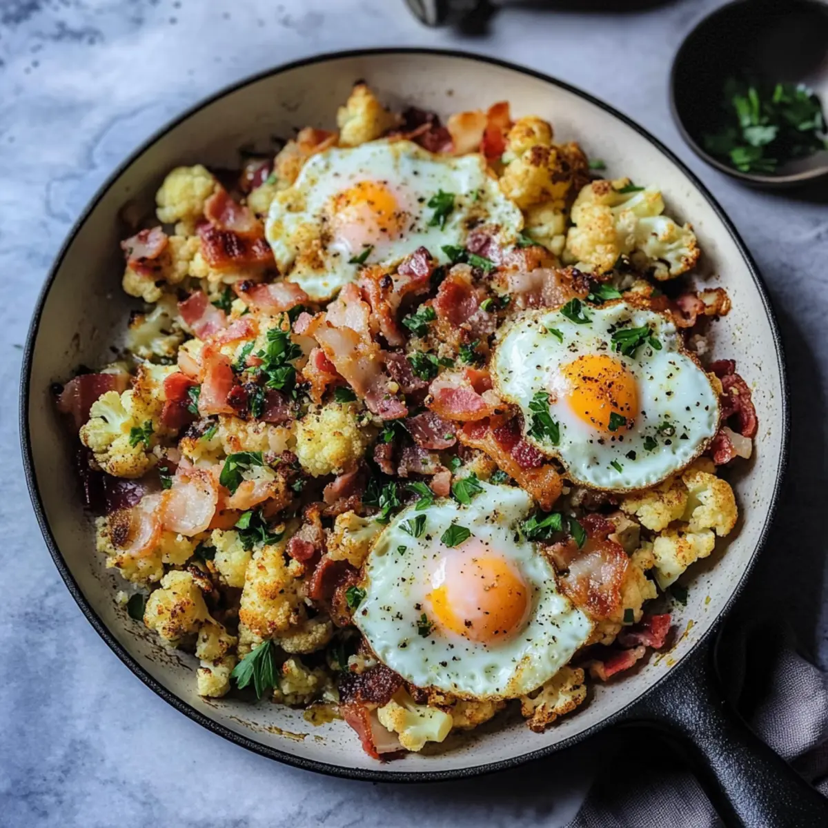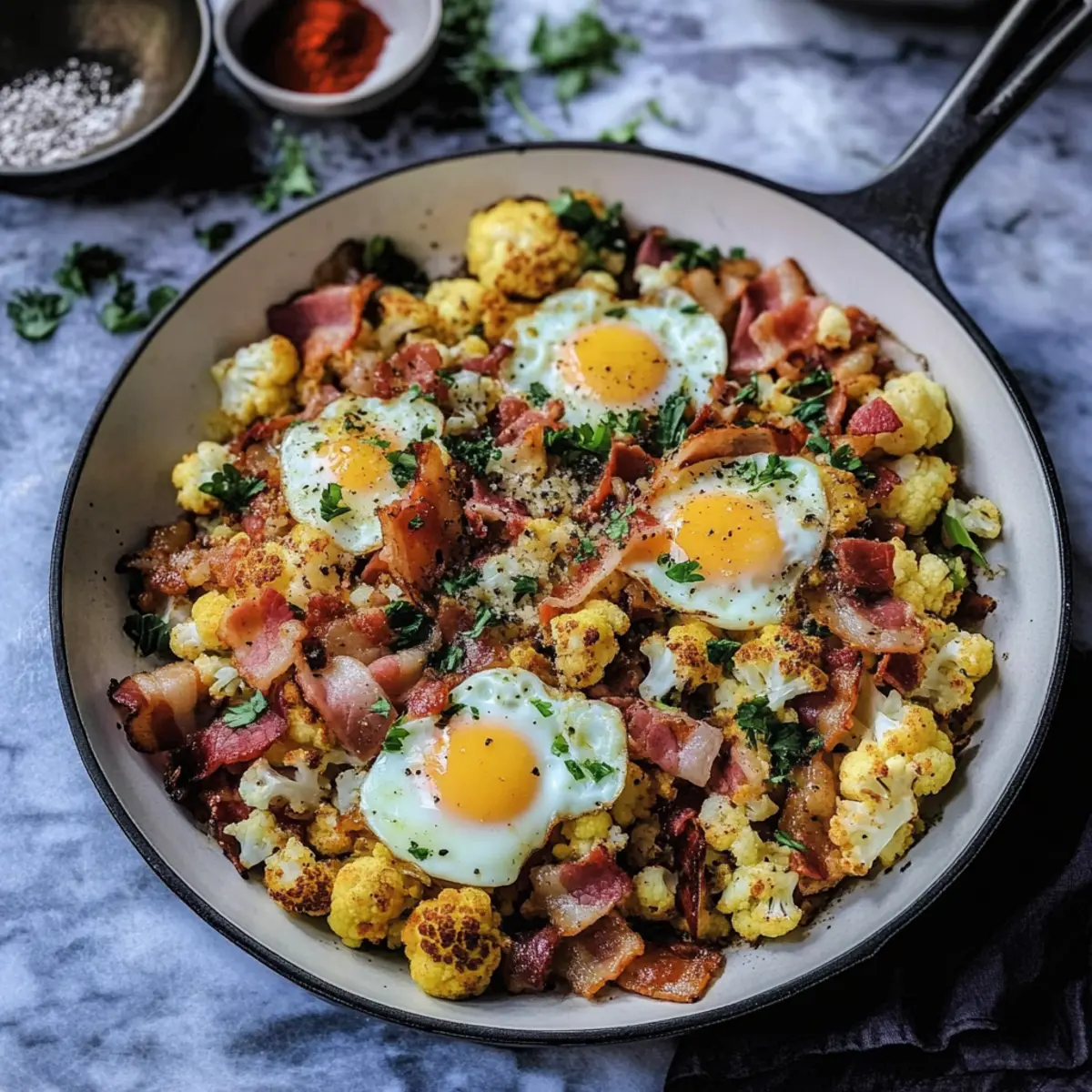 As the sun peeks through the kitchen window, the aroma of cumin and smoked paprika fills the air, inviting the promise of a delicious morning. With our flavorful Turkish Cauliflower Breakfast Hash, you can effortlessly elevate your breakfast game. This dish unites crispy bacon, tender cauliflower, and perfectly runny eggs, all crafted in one skillet—making cleanup a breeze! Plus, it’s a low-carb dream, perfect for those busy weekdays or leisurely brunches. Whether you’re a passionate home-chef or simply seeking a hearty alternative to bland breakfasts, this recipe fits the bill. Curious about how to bring a twist to your mornings while keeping it gluten-free? Let’s dive into the spices that make this dish irresistible!