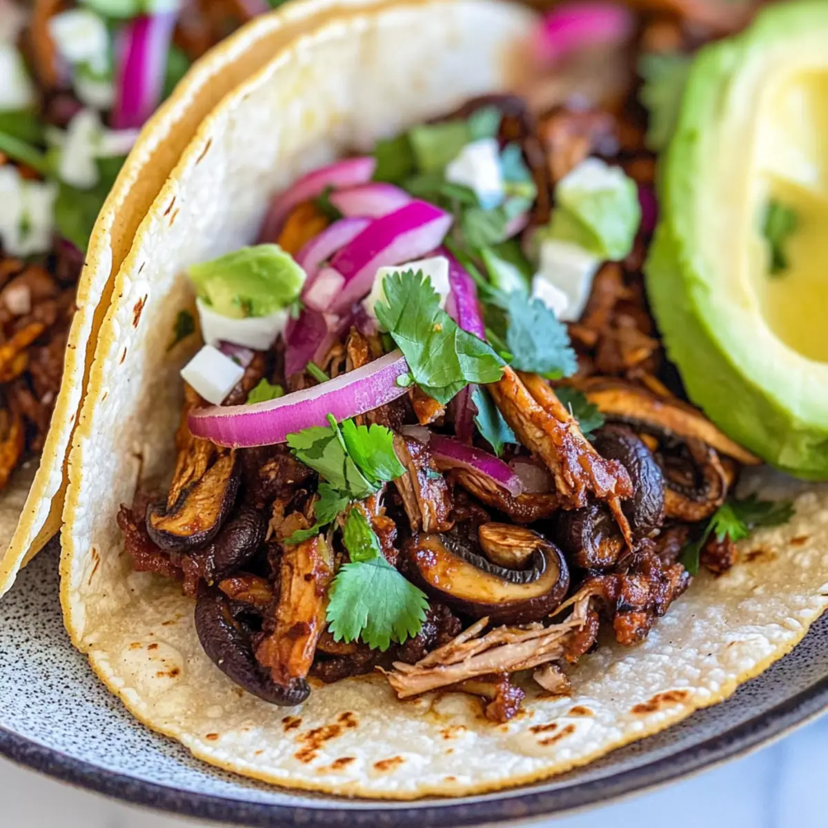 Warm your tortillas in a dry skillet or microwave until pliable. Now it’s time to assemble! Fill each tortilla generously with the crispy mushroom carnitas, and don’t forget to add your favorite toppings like diced avocado, crunchy cabbage, or vibrant salsa for a colorful and delicious meal.